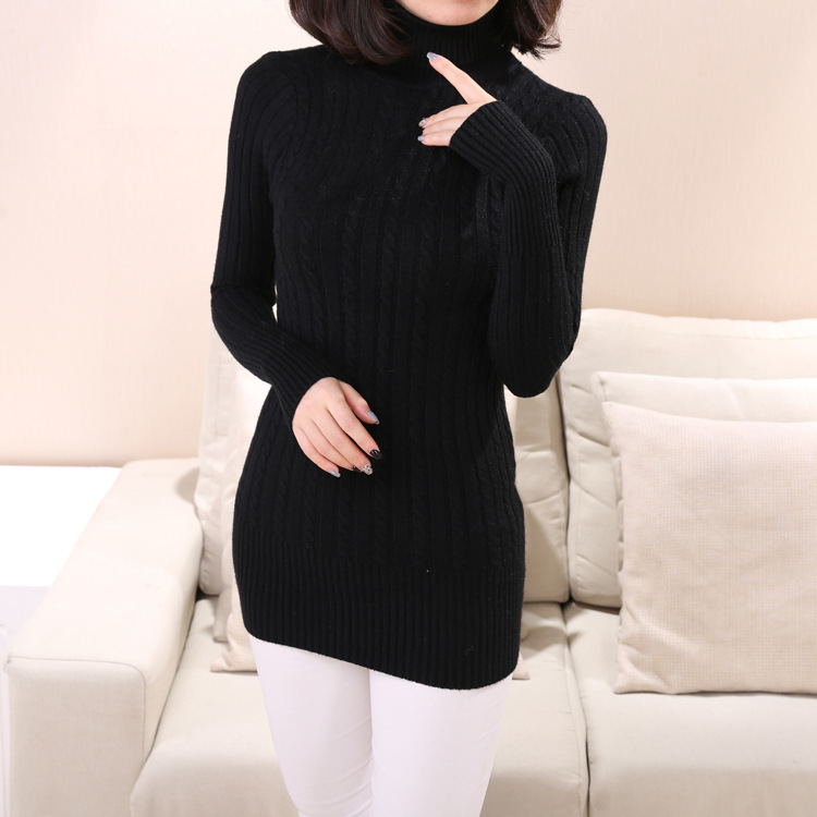 2015冬款半高領中長款修身長款針織加厚打底衫女包郵廠家直銷 /