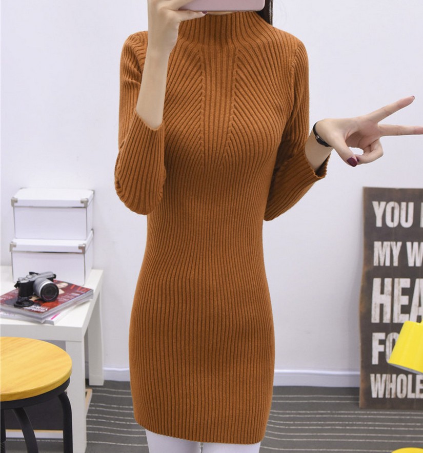 2015秋冬款半高領中長款毛衣修身長款針織衫加厚打底針織衫女 /