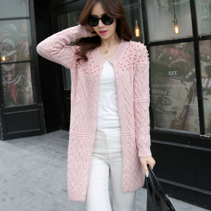 2015秋冬新款針織衫韓版中長款長袖開衫時尚大碼女裝毛衣女外套 /