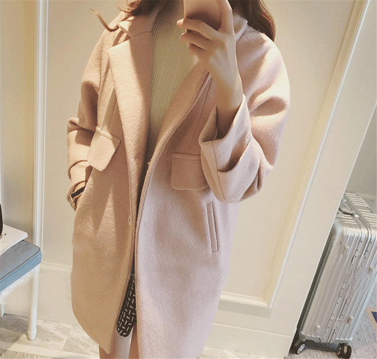 2015冬裝新款韓版氣質小翻領長袖羊絨毛呢大衣外套女0897 /