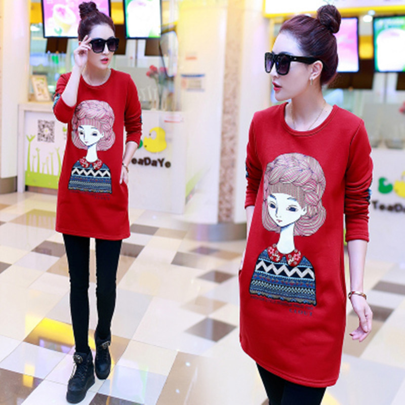 秋冬上衣中長款純棉修身t恤女士打底衫長袖加絨加厚復(fù)古女孩 /