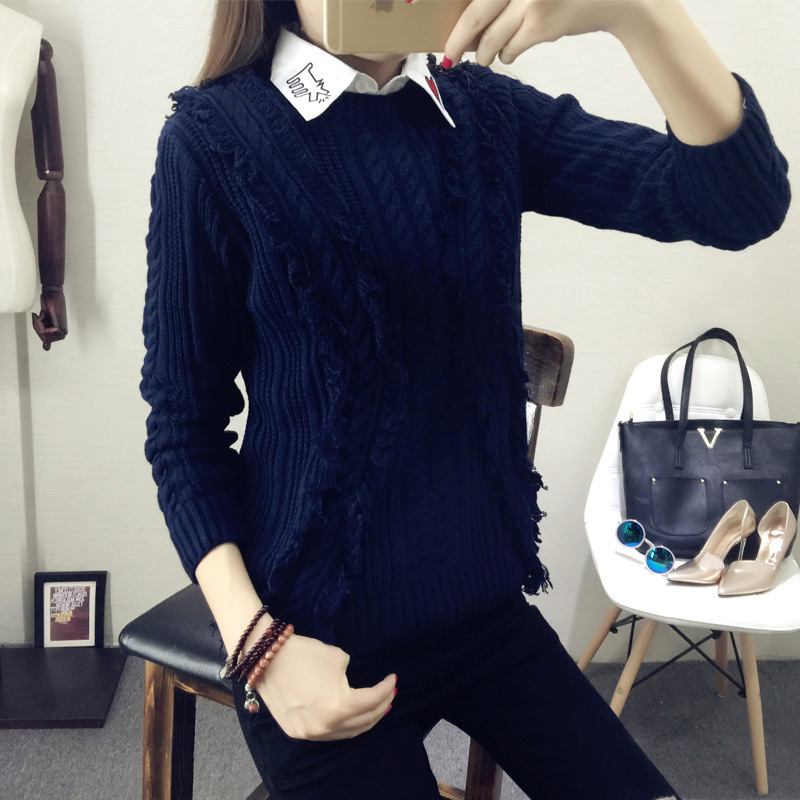 2015秋冬新款歐美百搭套頭純色毛衣女韓版寬松圓領長袖外套針織衫 /