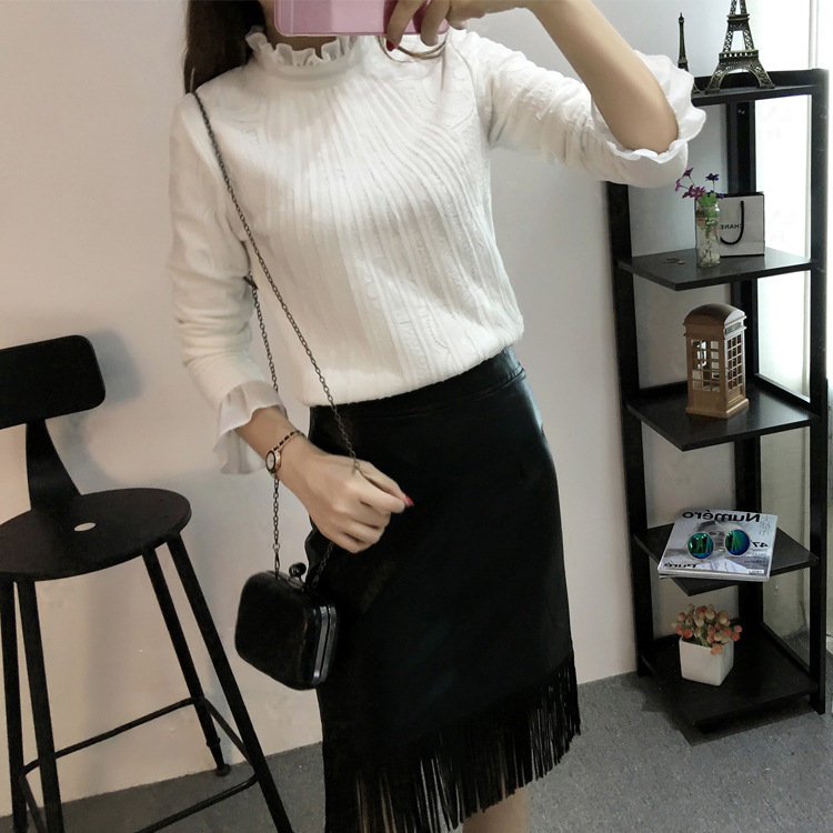 韓版加絨蕾絲衫2015秋冬新款女裝加厚打底衫長袖時尚氣質高領上衣 /