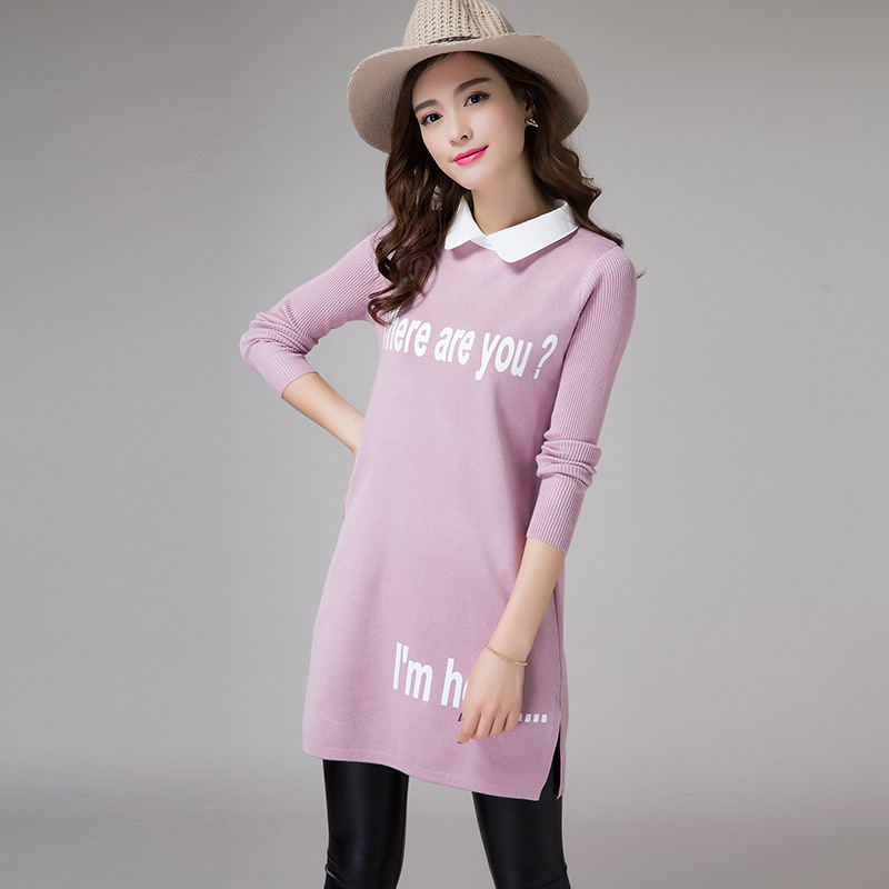 2015秋冬新款女裝娃娃領寬松針織衫打底衫中長款毛衣大碼長袖女潮 /