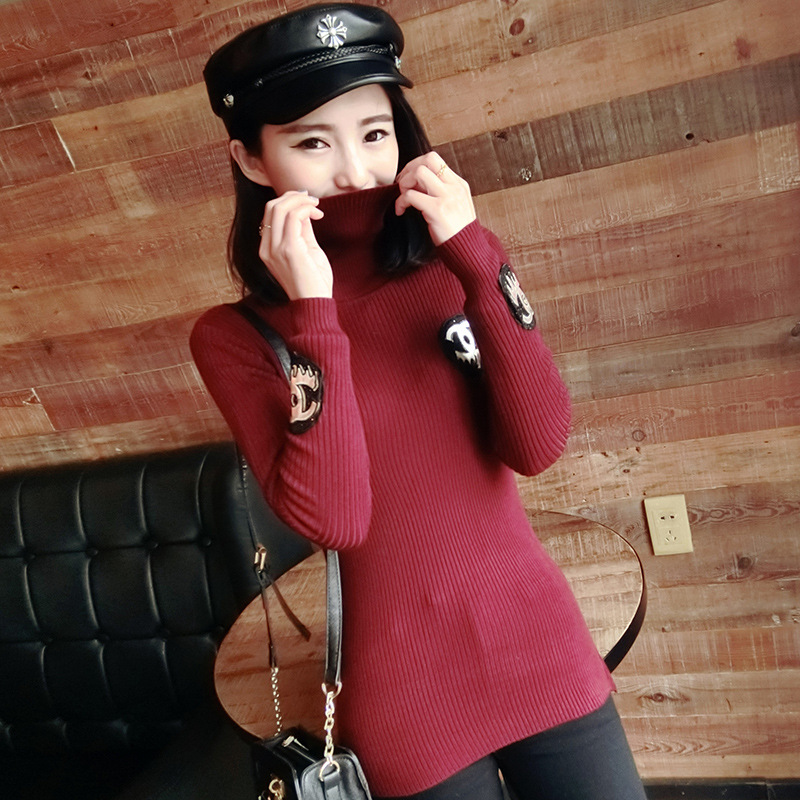 2015半高領羊毛衫女套頭修身打底衫加厚純色時尚中長款長袖針織衫 /