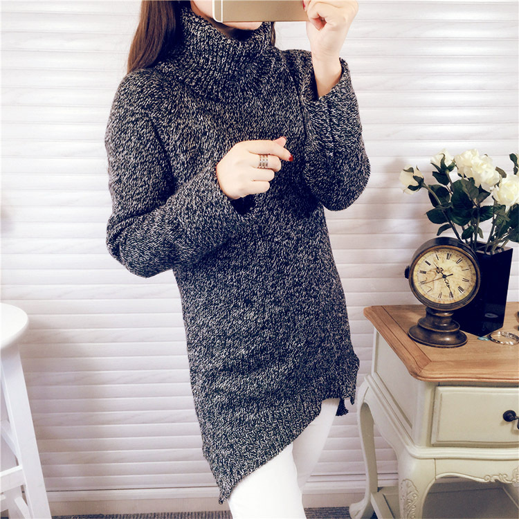 高領毛衣女中長款花色毛線前短后長插肩袖打底衫秋冬新毛線不起球 /