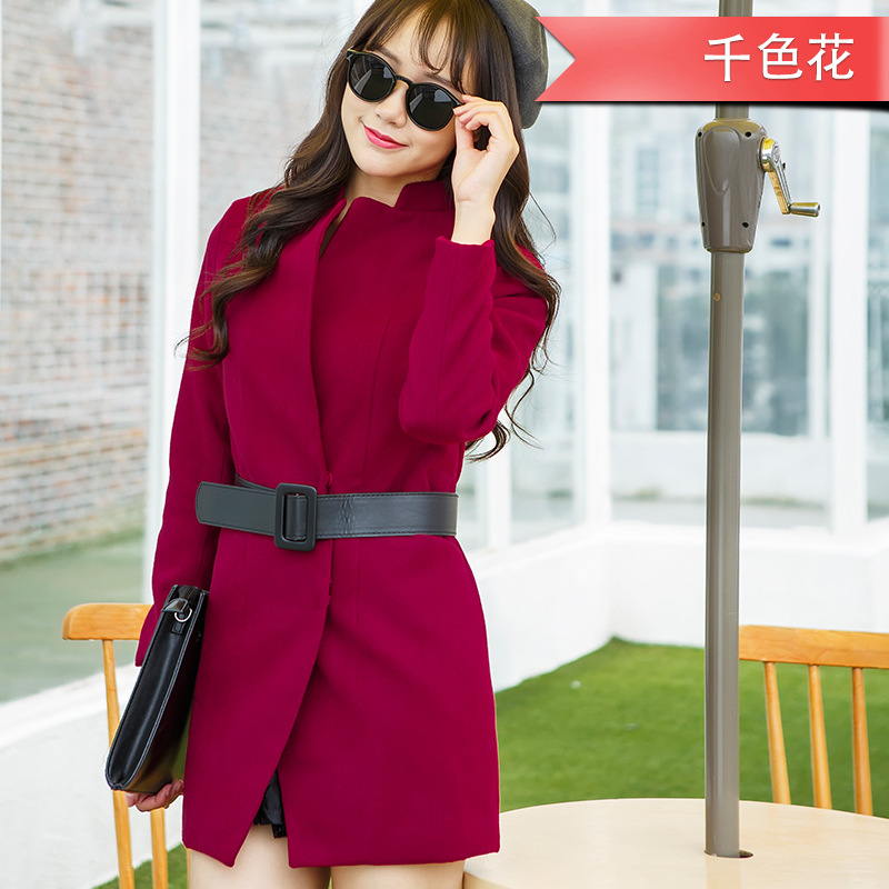 韓版純色收腰時尚外套 棗紅高檔外套 雙面呢夾棉 質量保證 /
