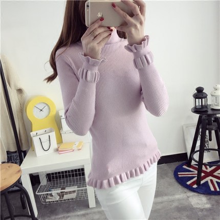外套女木耳花邊高領(lǐng)修身女士冬季打底衫女2015針織衫套頭毛衣 /
