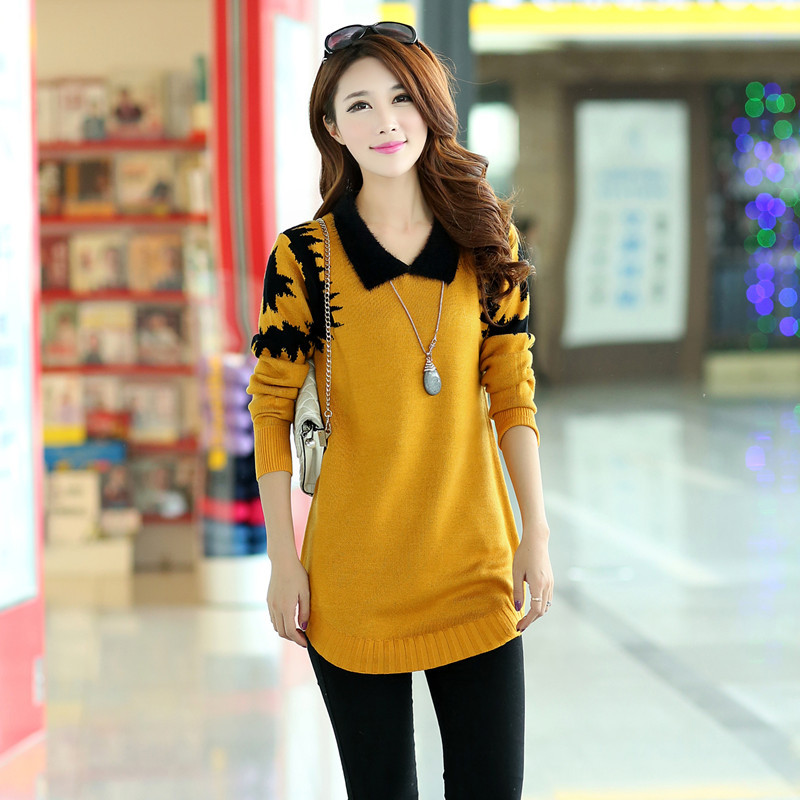 2015秋冬新款女裝 韓版翻領女式毛衣中長款打底針織毛衣裙 批發 /