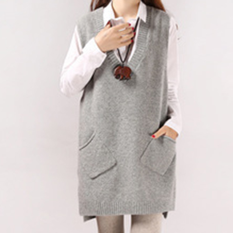 秋季時尚新款馬甲針織衫批發 套頭中長款背心裙無袖V領毛衣潮外套 /