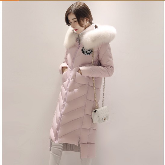 甜恬羽2015冬裝新款女裝韓版修身加厚狐貍毛領過膝中長款羽絨服女 /