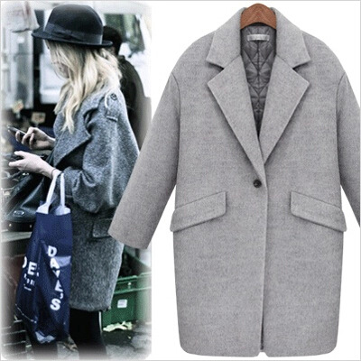 2015秋冬新款歐美簡約時尚翻領夾棉加厚繭型毛呢大衣呢子外套女 /