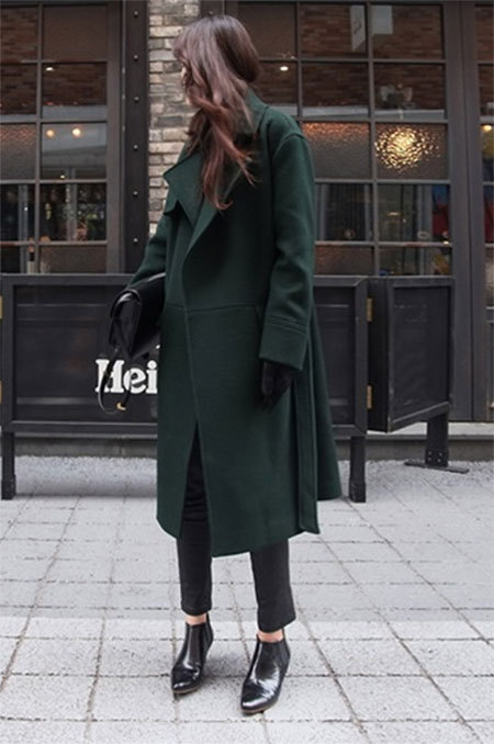 2015秋冬新款 歐美街頭時尚墨綠色修身加長款呢子大衣毛呢外套 女 /