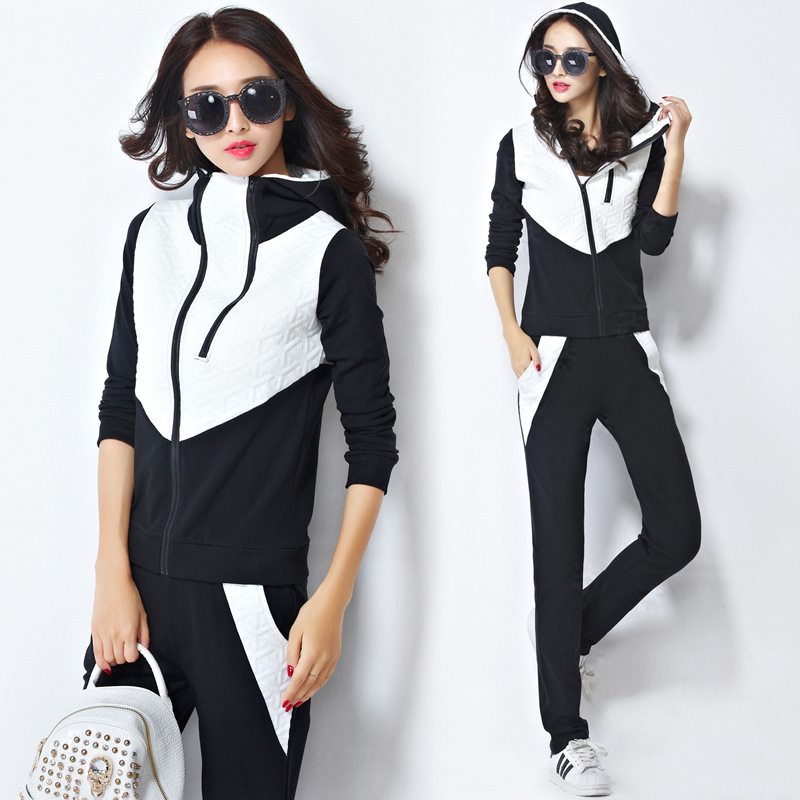 運動套裝女款春秋2015新款秋裝連帽長袖休閑套裝韓版衛衣兩件 /