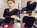 2015秋冬裝新款韓版蕾絲修身打底衫 V領顯瘦內搭t恤 女潮 /