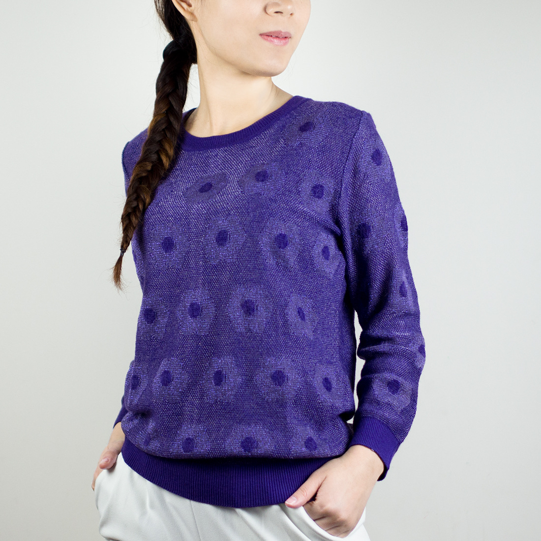 女裝秋冬打底毛衣針織衫電腦提花廠家直供可定制來樣加工 /