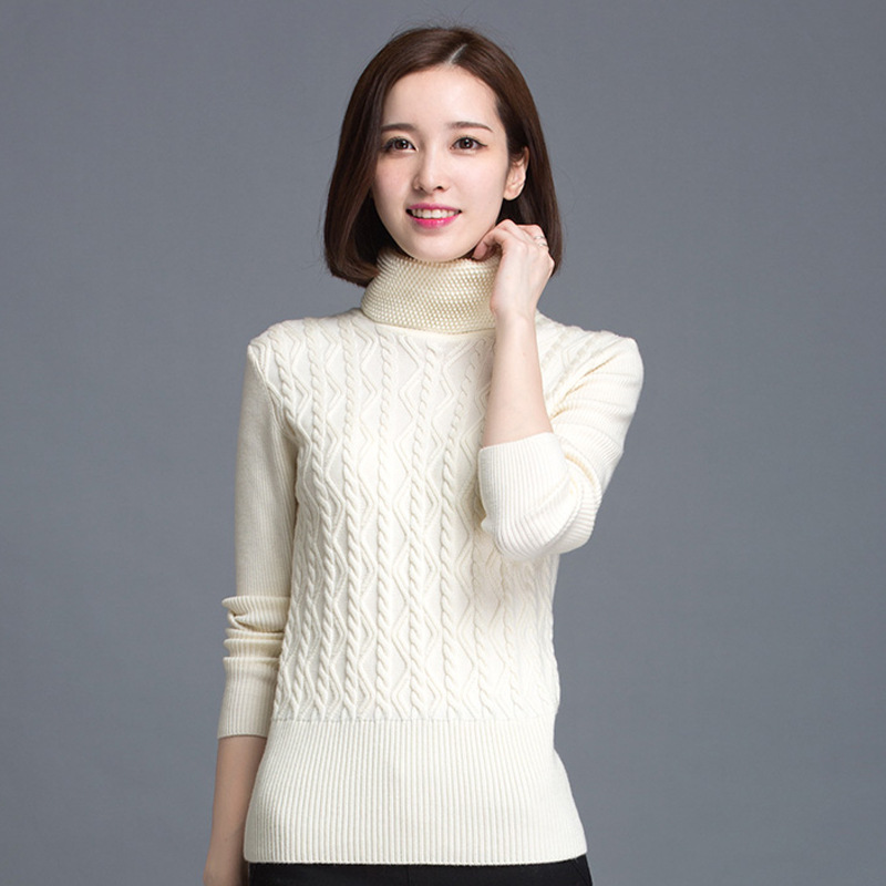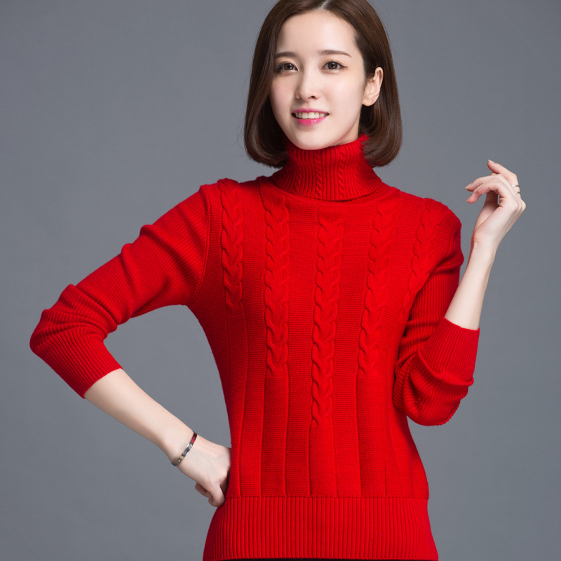 秋冬新品毛針織衫女士修身彈力高領羊毛打底衫短款套頭毛衣 厚 /