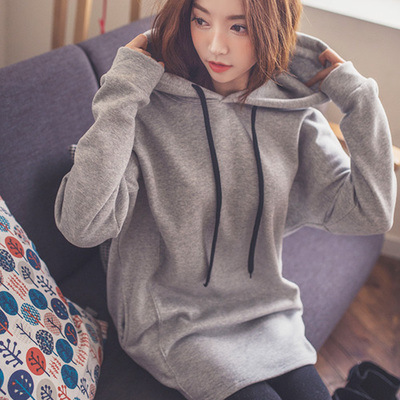 2015秋冬新款加絨加厚外套韓版大碼女裝連帽套頭衛衣 /