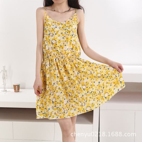 2015夏季新款女韓版氣質寬松吊帶碎花裙子一件代發免費代理S026 /