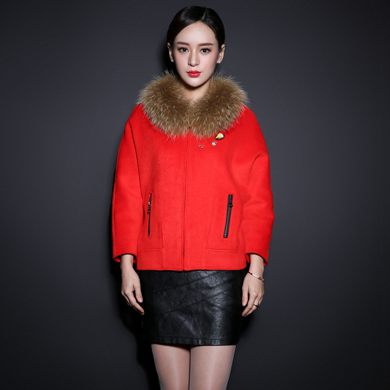 2015秋冬季女裝韓版毛呢外套短款貉子毛領羊毛呢子短外套女時尚潮 /