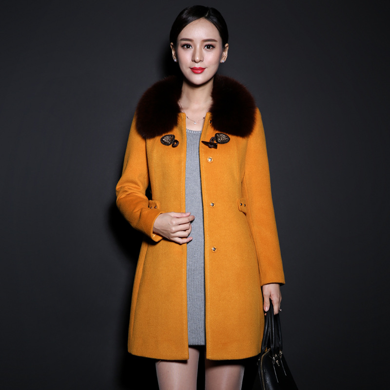 2015冬裝新款韓版修身狐貍毛領羊毛呢外套中長款呢子大衣女裝加厚 /