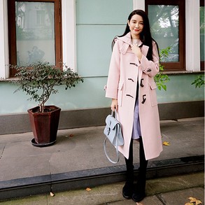 張大奕灰粉藕粉裸粉傻傻分不清氣質粉大衣女純色寬松文藝學生 /