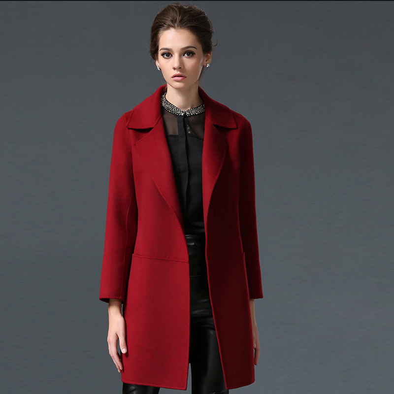 高端雙面羊毛大衣女款2015新款秋裝毛呢外套女中長款羊絨呢子大衣 /