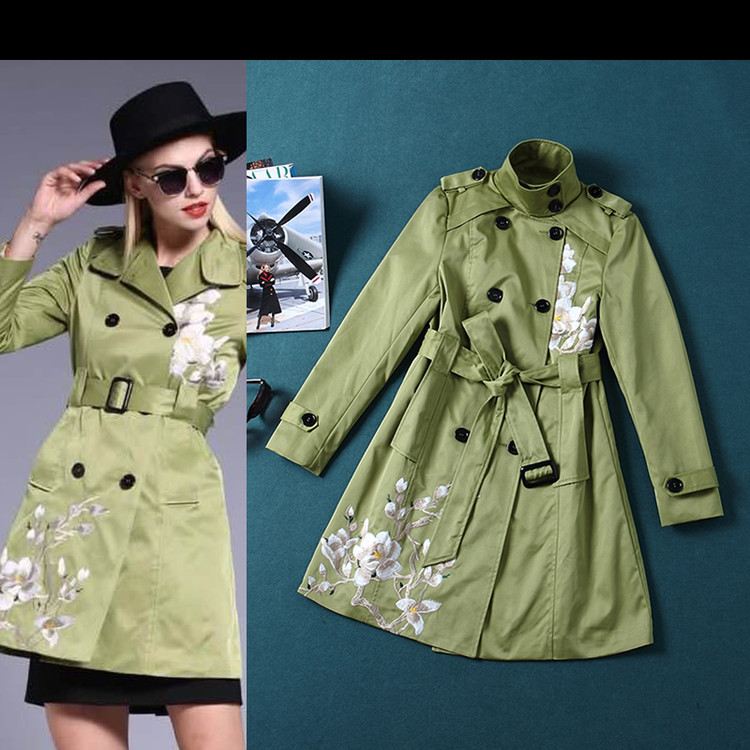 刺繡 中長款大衣外套2015秋冬高端新款歐風衣女款綠色黃色雙排扣 /