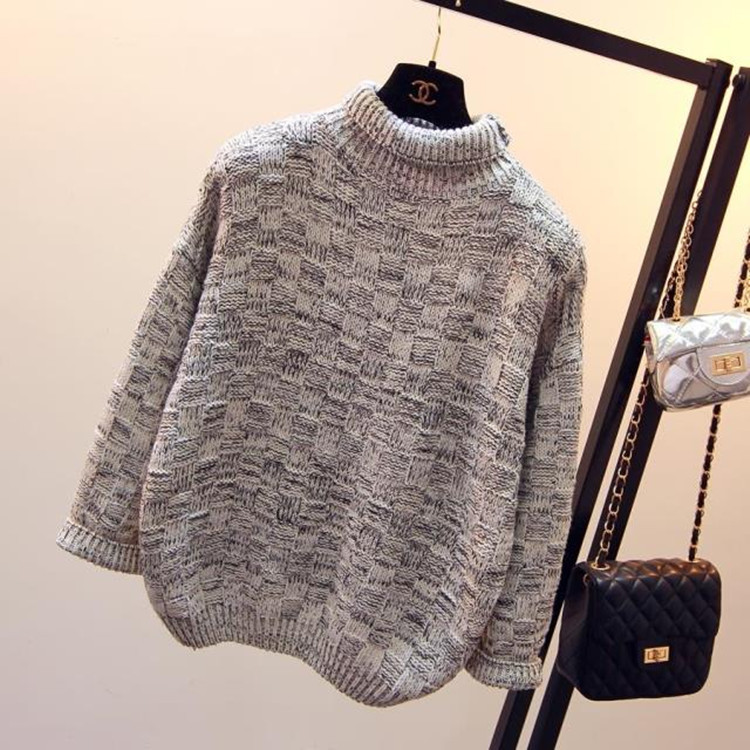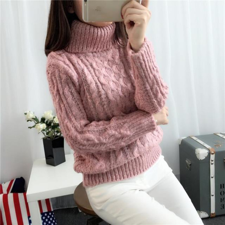 秋冬季韓國麻花高領(lǐng)套頭毛衣外套加厚保暖打底針織衫寬松女款批發(fā) /