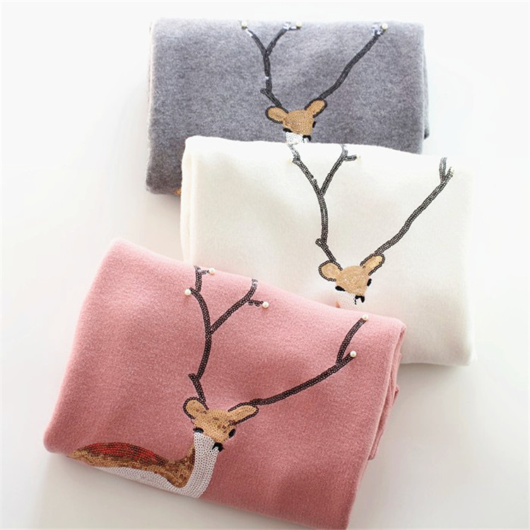 2015韓版秋冬裝新款毛衣女小鹿釘珠亮片刺繡圓領(lǐng)寬松套頭打底衫 /