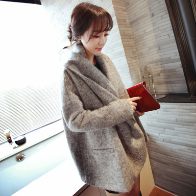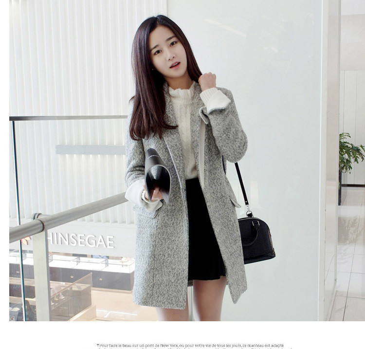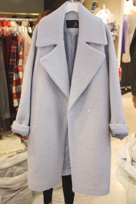 韓國東大門秋冬新款繭型修身毛呢外套女中長款加厚灰色呢大衣 /