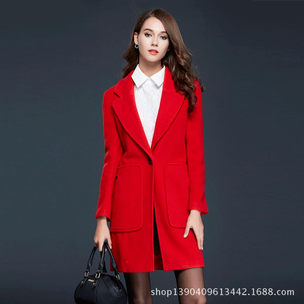 2015秋冬季新款女裝歐美OL氣質(zhì)時(shí)尚西裝領(lǐng)羊毛呢外套大衣一粒扣型 /