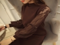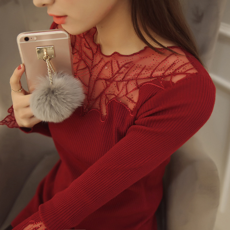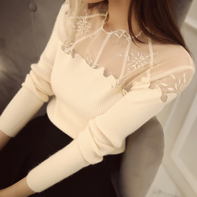 2015女士秋裝蕾絲套頭打底針織衫女秋冬外套韓版網(wǎng)紗長袖毛衣百搭 /
