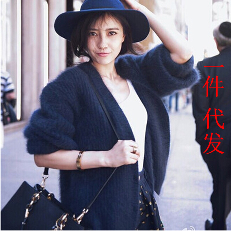 15英倫時裝周 毛衣女裝外套高圓圓同款仿貂毛 寬松針織開衫直銷 /