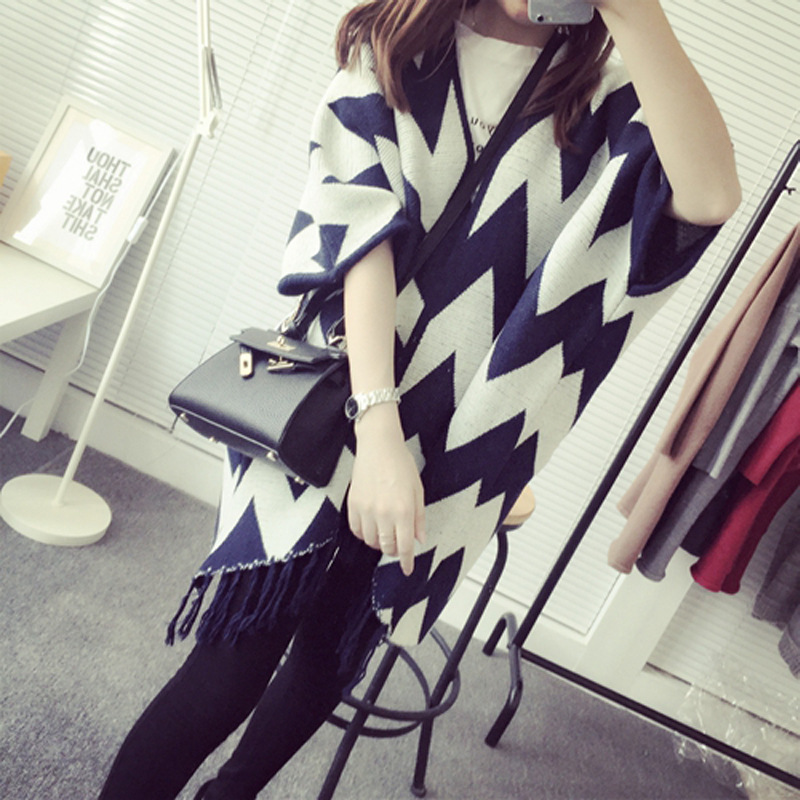 15新款韓版秋冬女裝流蘇毛衣外套波浪提花蝙蝠袖大板針織開衫直銷 /