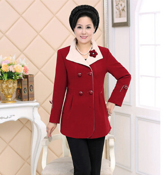 2015秋冬款毛呢外套保暖修身大碼女裝羊毛舒適休閑媽媽裝批發(fā) /
