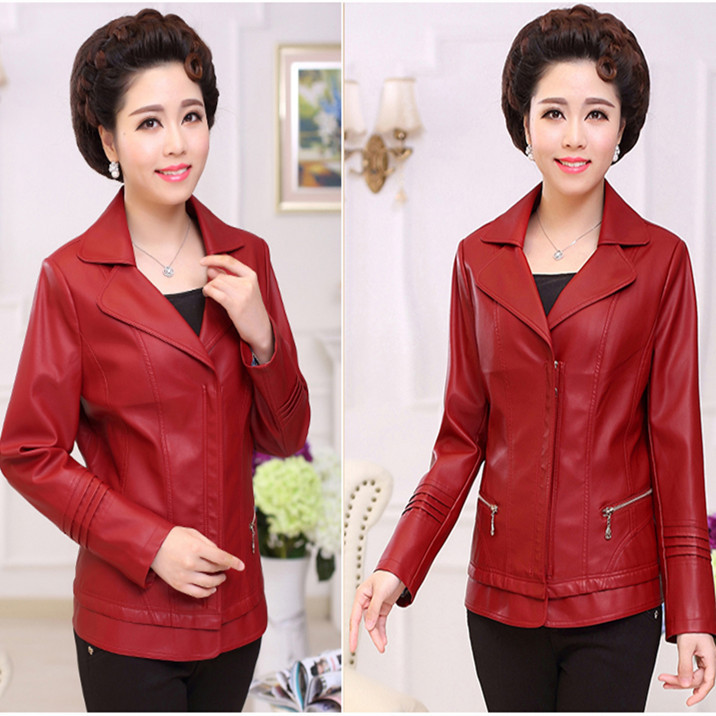 中年女士pu皮衣秋新款皮尤上衣修身時尚媽媽裝皮夾克外套夾克 /