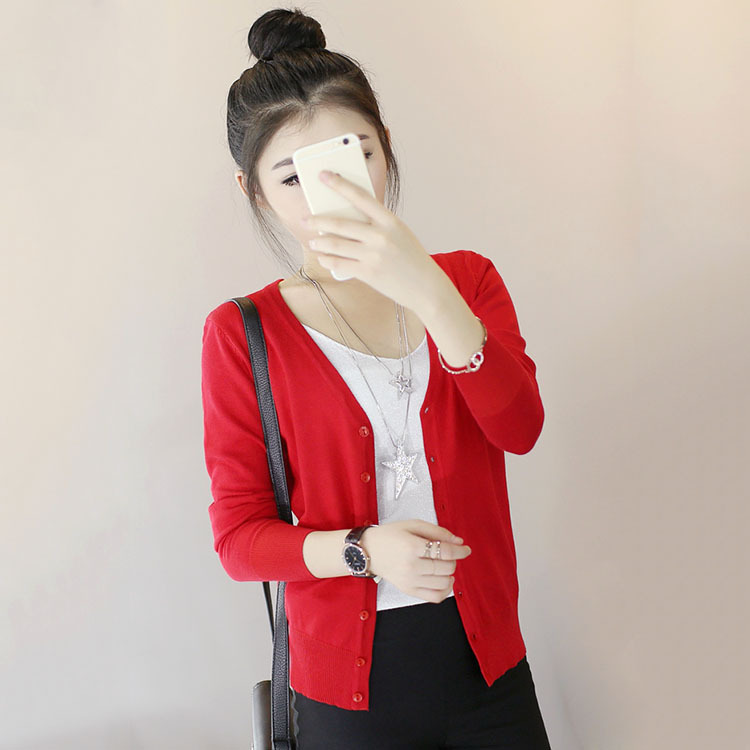時尚女裝韓版秋冬長袖開衫V領外套 多色可選修身短款女式針織衫 /