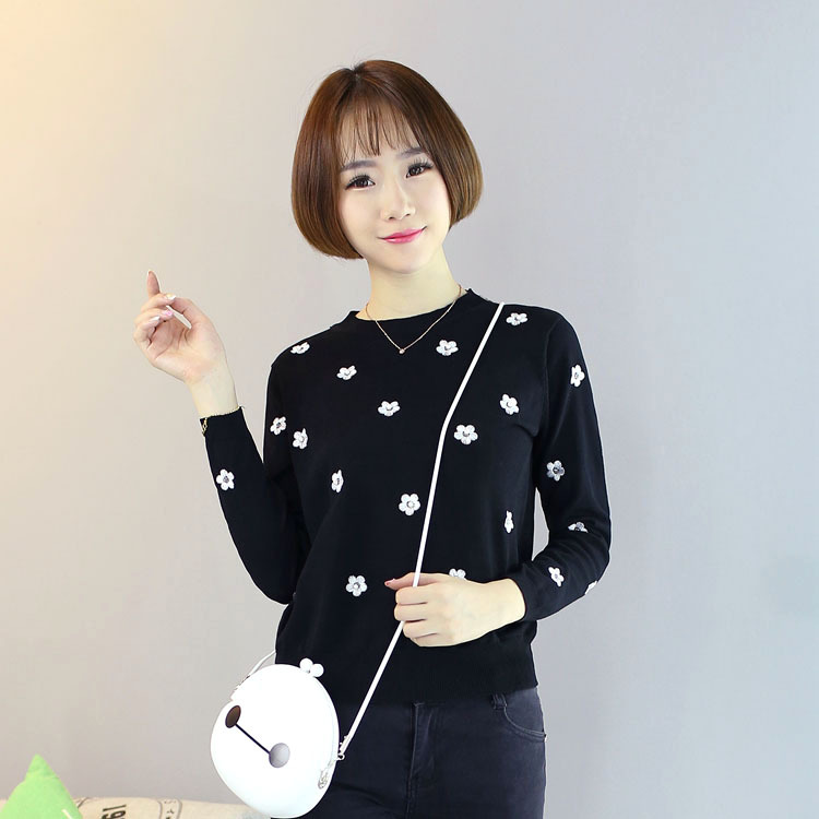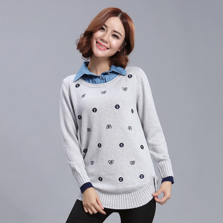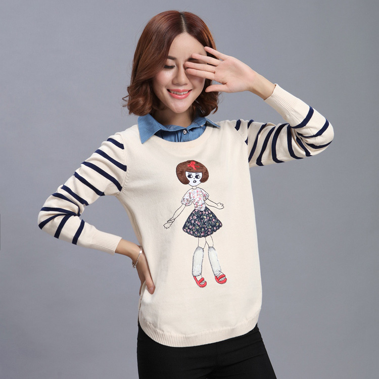 新款2015冬季女士針織衫批發 時尚潮流休閑圓領套頭卡通修身上衣 /