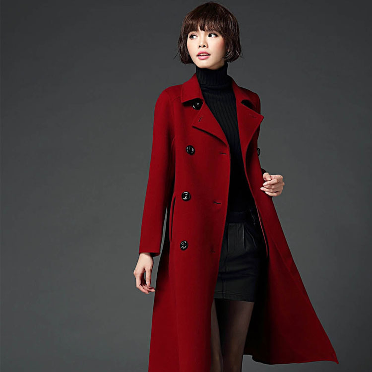 新款羊毛絨大衣女專柜正品高端毛呢外套純手工雙面羊絨呢大衣批發(fā) /