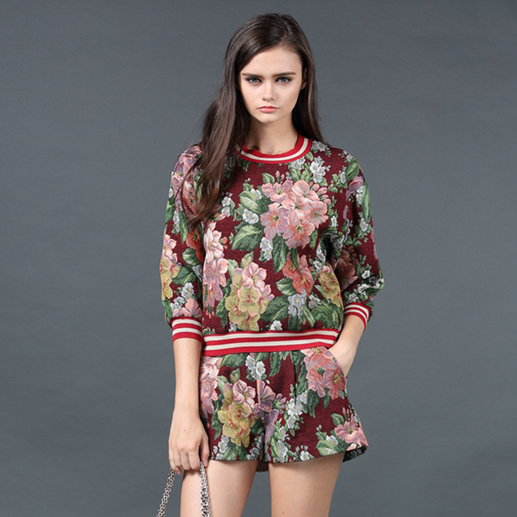 歐洲站2015新款女裝 粗紡提花棉休閑小香風 時尚運動休閑套裝 /