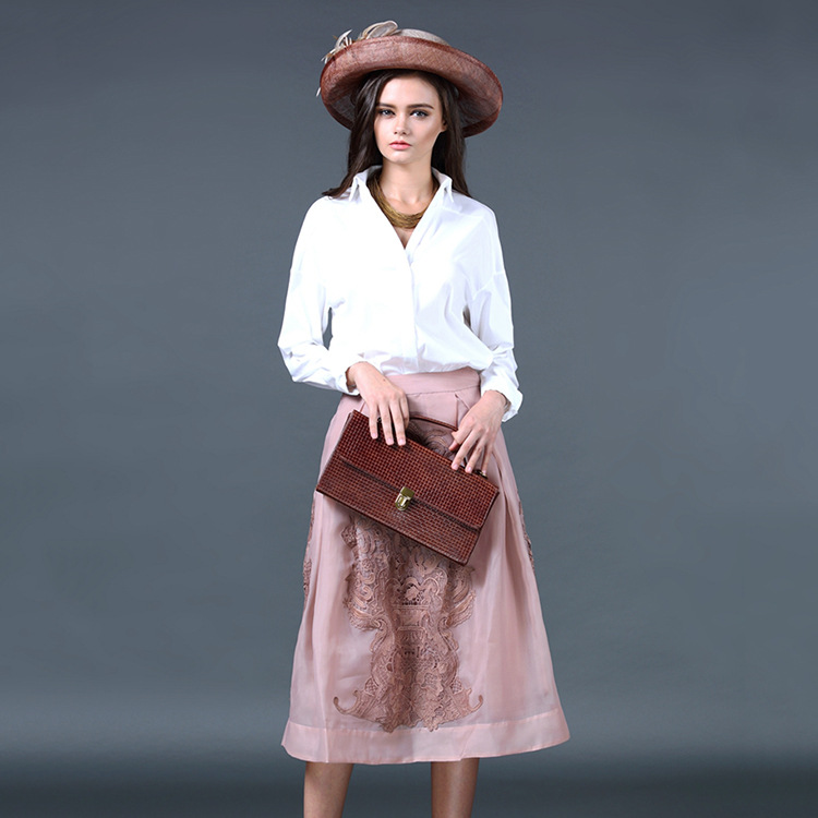 歐美時尚半身長裙秋冬新款女裝 歐根紗水溶貼花大擺裙 廠家直銷 /
