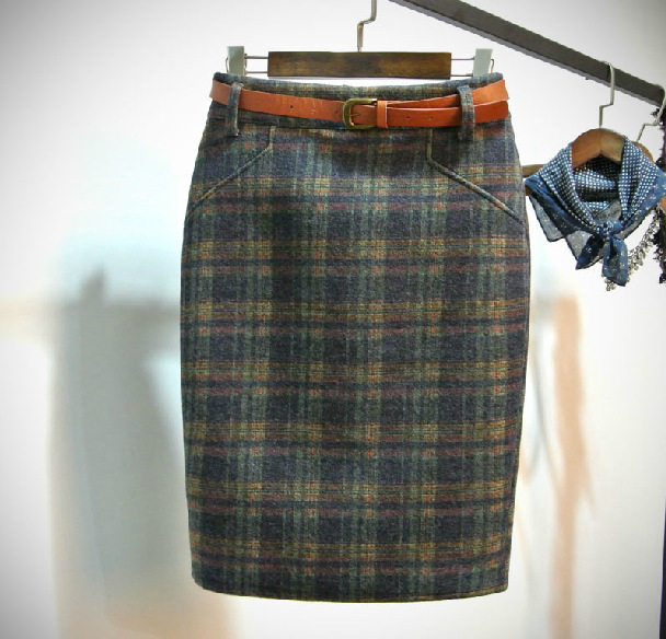 2015冬季毛呢修身顯瘦半身裙高腰女裝毛線褲裙A字打底千鳥格短裙 /