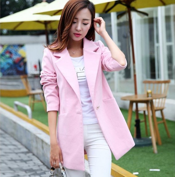 2015秋冬季新款韓版女裝中長款毛呢外套女式西裝領大碼呢子大衣 /