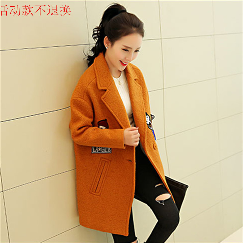2015秋冬季新品韓版長袖 毛呢外套女中長款加厚大碼女裝 /