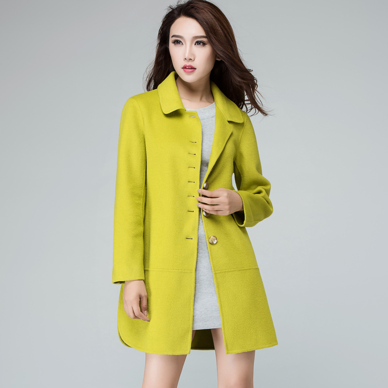 時尚純手工縫制雙面羊絨大衣女羊毛外套中長款單排扣開叉2015新款 /