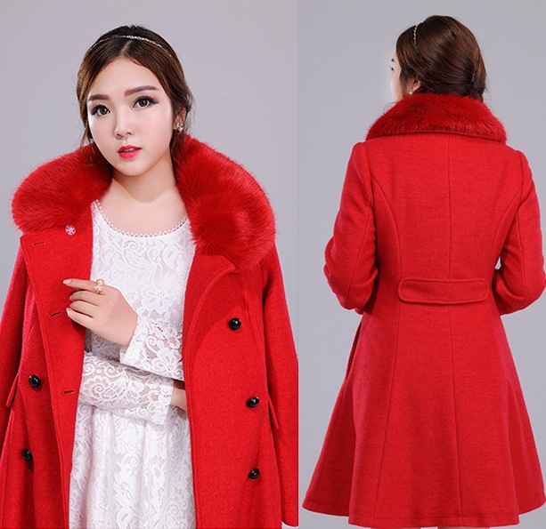 大碼女裝羊毛大衣2015冬季毛呢外套雙排扣夾棉加厚保暖顯瘦兔毛領 /