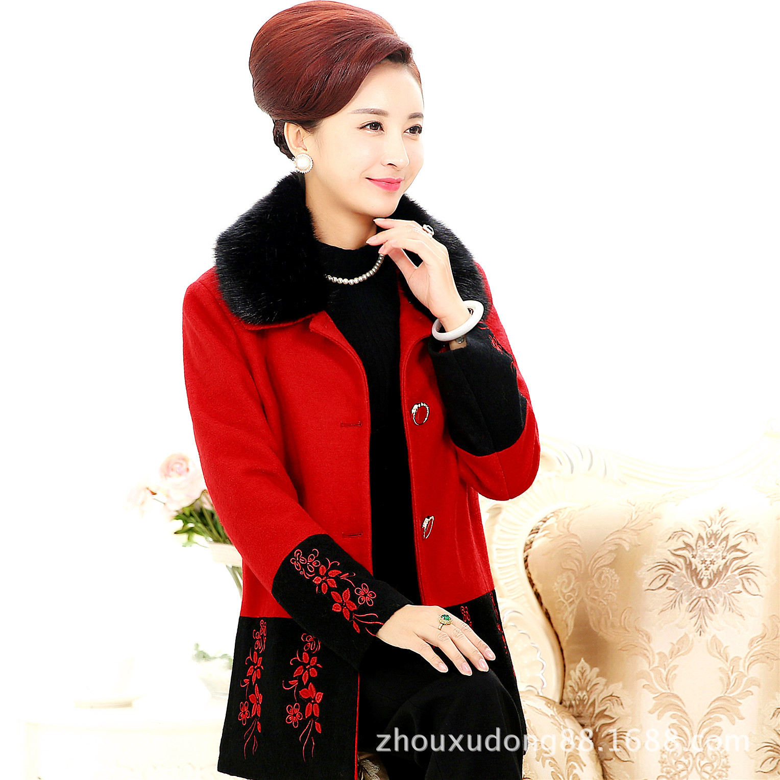 2015中老年女裝毛呢 秋季媽媽裝呢大衣外套 中老年繡花大衣女批發 /