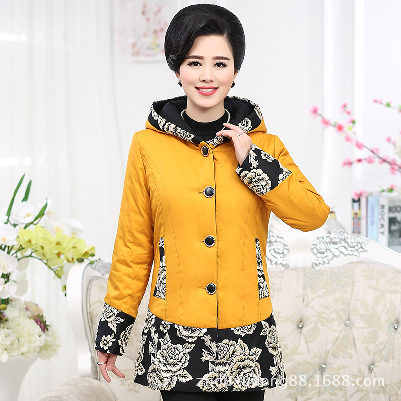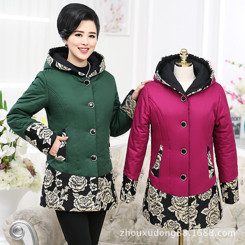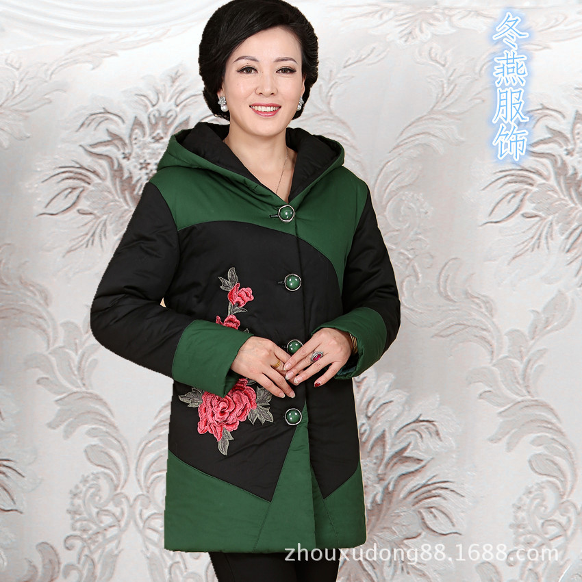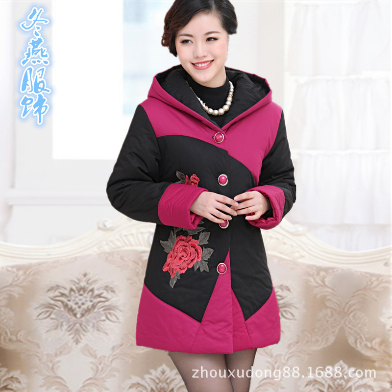 2015冬季新款媽媽裝 大碼棉衣連帽繡花 休閑時尚中老年女裝 /