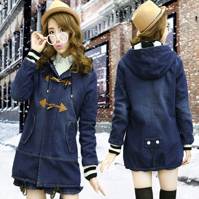 牛仔外套2015冬季韓版大碼女裝加厚中長款外套少女學生棉服棉衣 /
